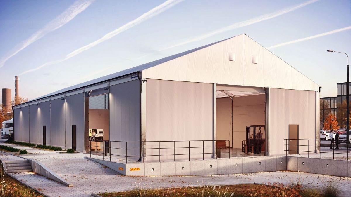 Our clear span industrial builidngs are manufactured using the highest quality materials, providing effective protection against rain, snow and wind. Depending on individual requirements and location, it is possible to further strengthen the structure with the addition of trapezoid single skin steel or insulated sandwich panel sides. Our clear span buildings are designed to be used all year round. Thanks to our extremely attractive, industrial structures are a perfect solution for small, medium and large businesses alike. Our covers are manufactured using high quality translucent PVC fabric which allows natural light to enter, greatly reducing operating costs.