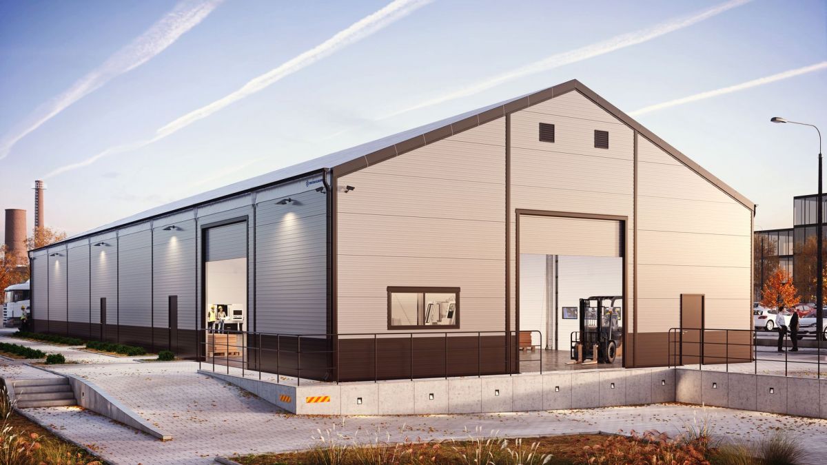 The insulated panel wall guarantees effective thermal insulation. Our clear span industrial buildings comply with all fire protection requirements. Insulated panel wall is often used in industrial buildings, and its use allows for significant savings in the process of heating the hall and its year-round maintenance.